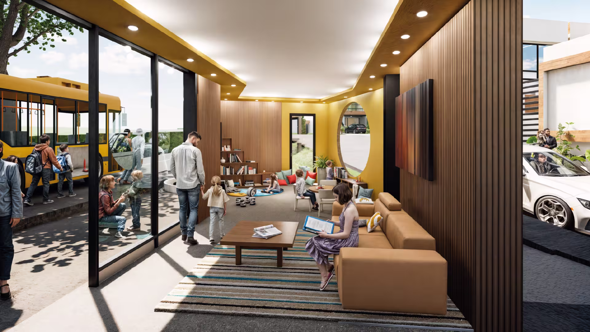 - Lobby Escolar: Un espacio dedicado y confortable donde tus hijos pueden esperar su transporte escolar con seguridad, diseñado para la tranquilidad de padres y estudiantes.